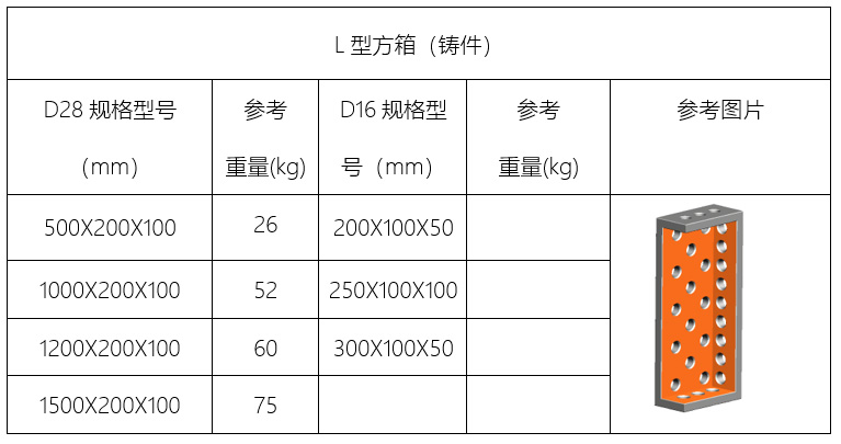【D16/D28L型多功能方箱的規(guī)格型號】: