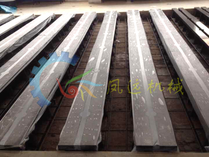 2、 鑄鐵地軌的的安裝: 使用條形橋板,合像水平儀。先調(diào)平一根地軌,然后以其為基準(zhǔn),依次往下進(jìn)行初調(diào)。然后水泥灌漿,待水泥漿凝固后,進(jìn)行精調(diào)檢驗(yàn)。