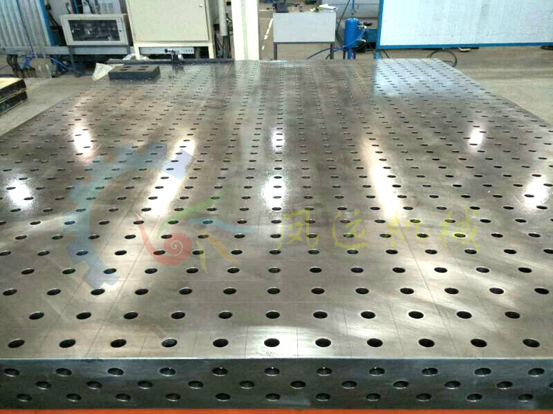 2、三維柔性焊接平臺(tái)由灰鐵澆筑而成具有承載能力高,鋼性穩(wěn)定,長(zhǎng)期使用不變形容易維護(hù)保養(yǎng),它的五個(gè)面均加工有規(guī)則的通孔(孔間距一般為100mm也可根據(jù)客戶需求定制其他尺寸),并刻有網(wǎng)線。焊接平臺(tái)可方便地延伸和擴(kuò)展,任意組合組合。